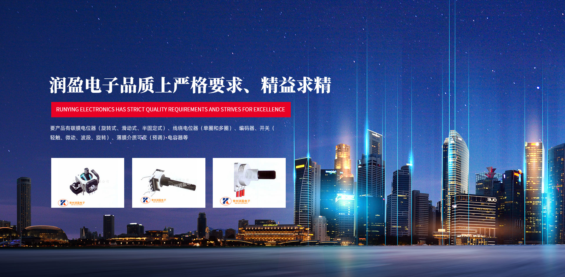主要产品有碳膜电位器(旋转式、滑动式、半固定式)、线绕电位器(单圈和多圈)、编码器、开关(轻触、微动、波段、旋转)、薄膜介质可变(预调)电容器等